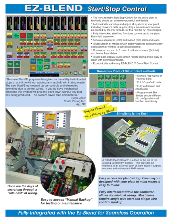 Simple yet extremely powerful, the Ez-Blend Start/Stop control provides complete, plant specific, fully interlocked control of plant systems.