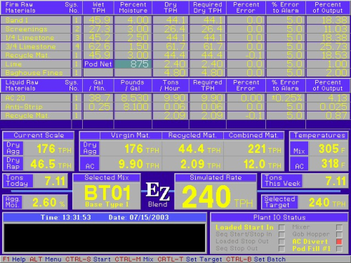 Ez-Blend™ system can control 2 liquid asphalts, 6 recycled materials, 12 cold feed bins, multiple